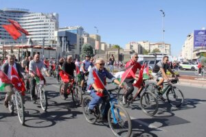Kayseri’de Filistin ve Küresel Sumud Filosu’na destek olmak, İsrail’in saldırılarını protesto etmek amacıyla bisiklet turu düzenlendi.